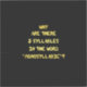 Yellow text on a black background humorously questions why the word "monosyllabic" contains five syllables. The playful design highlights the irony in linguistic terms.