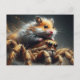 Funny adorable hamster riding a giant spider postcard