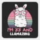 Funny Adorable Llama 33rd Birthday Gift For Women Square Sticker