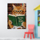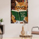 Funny Adorable Reading Cat Art Coffee Tabby Cat Poster
