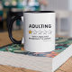 Funny adult mug featuring the word "ADULTING", with 1 out of 5 stars, a bad review saying "hate it, would not recommend it to anyone", and their name.