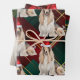 An adorable Afghan Hound dog is ready for the holiday season with holiday hat. This cute Christmas dog is paired with a red, green and gold holiday plaids on this set of gift wrap for the dog lover.