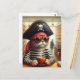 Funny AI Art Pirate Cat With Coffee In Bookstore Postcard