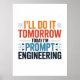 “I’ll Do It Tomorrow, Today I’m Prompt Engineering.” A funny artificial intelligence design for programmers, prompt engineers, coders, and AI enthusiasts. Perfect geek humour for developers who love ChatGPT, machine learning, and tech culture. Great gift for AI lovers.
