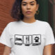 For the prompt engineer who lives the code life—this funny AI-themed t-shirt features bold white graphics of "Sleep, Eat, Prompt" in a retro icon style. Whether you're training models or just vibing in dev mode, this black tee is perfect for coders, chatbot fans, and AI nerds. Makes a great geeky gift for tech lovers, software engineers, or anyone obsessed with GPT and large language models. Available in multiple sizes and styles—get one before your next prompt-a-thon!