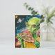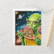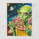 Funny Alien in Space Eating Pizza Postcard