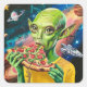 Funny Alien in Space Eating Pizza Square Sticker