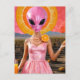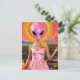 Funny Alien Lady in Pink Postcard