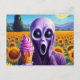 Funny Alien With Melting Ice Cream Faux Van Gogh Postcard