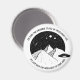 Funny magnet with illustrated mountain landscape and spaceship leaving Earth. Quote reads “I'm sure the universe is full of intelligent life. It's just been too intelligent to come here.” ― Arthur C. Clarke