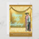 Funny and funky 60th birthday card features a vintage costumed performer photo cutout with a gold "stage" background, neon aqua "Happy 60th Birthday" text and bottom text that explains in 365 days...this birthday won't be so special anymore, so seize the day!