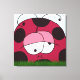 The funny and chubby crossed-eyed ladybug sits on some tall green grass. Based on an original art piece by © One Artsy Momma.