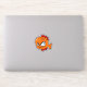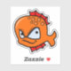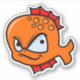 Adorable angry cartoon goldfish. He has an orange body and red fins. His eyes are big with a funny but angry expression. His mouth is in a half smile which adds to his comical look.