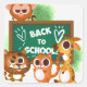 Funny animals welcome you back to school. Funny square sticker to give your child a happy start.