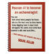 This funny, black comedy notebook explains the first and best reason to become an archaeologist: you can talk about dead people for hours, discuss the best way to clean bones, keep digging tools in your truck, disappear for weeks and come back covered in dirt and scratches... and still, nobody will suspect you of being a serial killer! And just to be sure nobody can miss the message, the message is written in in creepy pitch black and blood red characters on an excavation-like sandy beige background in a dark red frame. It is a funny original idea for a friend with a dark humour and a passion for archaeology... and for journalling or keeping their study notes in an eyecatching style!