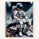 A spiral notebook featuring a funny astronaut design with the quote “I Need More Space.”