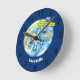 Funny astronaut in space and earth cartoon round clock