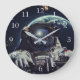 Funny Astronaut Shorthair Cat in Space Large Clock