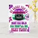 Funny, at least you're not... folded greeting card. A fun birthday card with silhouette birthday cake in front of a retro back ground in purple, cerise, mint green, emerald green and pale pink. The name on the cake is of course customisable. The greeting on the front of the card states, "At least you're not as old as you'll be next year!" Inside the message says "Happy Birthday" which is also customisable.