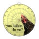 A really funny picture of a chicken with an obvious attitude (it's the look in his eye,) and the words, "you talkin' to me?"