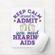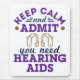 Funny audiology gift for audiologist. Design says, "Keep calm and admit you need hearing aids."