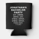 The guys at your Bachelor Party will get a laugh out of this funny can cooler the reads "Jonathan's (change name) Bachelor Party. Eat Drink Drink Eat Drink Drink Drink Drink Pass Out (Date of party). Feel free to change any of the text as it's totally customisable. You can also easily change the background colour. Bold, modern, fun - a perfect party favour for your guys.