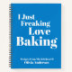 I Just Freaking Love Baking! Blank recipe journal in blue, personalised with your name.