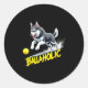 Funny Ballaholic Siberian Husky Dog Chasing Ball Classic Round Sticker