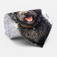 Woof art in soft faded grey on white sets off a very cute Barbet dog in a red holiday hat for the dog lover's holiday celebrations.