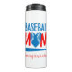 Funny insulated tumbler design that's perfect for Mother's Day features Baseball Mum word art with "there may be wine in here" added text.