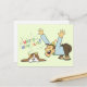 Funny Basset and Man Celebrate New Years Cartoon Postcard