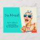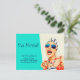 You've moved and now it's time to let all your friends and family know! Send an outrageously funny and unique change of address card featuring a kitschy stylish woman in striped sunglasses and hair turban with a polka dot bag and striped towel, rocking her attitude. The humour is carried out in the whimsical type face. The retro colour scheme of aqua, beige, navy and red adds to the fun of this design. The back of the card has a text template for writing your own personal message.