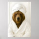 Funny Bear Bathroom Print, Bear In Bathrobe Poster