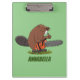 This happy beaver is ready to build his lodge with a chainsaw. Drawn in fun cartoon illustration style!