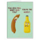 This funny beer and bratwurst design is perfect for Oktoberfest parties or all year for beer fans. It shows a bratwurst saying to a bottle of beer, "You Look PALE, What ALES You?" The beer bottle grumbles back, "You're the WURST."