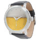 Has heft and feel of expensive stainless steel quartz watches. Good band with safety catch.  I removed links, which is easy because engraved arrows show direction to push the linking pins. As always by this seller, the image (a railroad logo) is a perfect reproduction of my emailed image, and is precisely spaced and aligned.