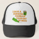 This funny beer hat design says, "I have a drinking problem: I ran out of beer!" in bold orange-yellow letters. It also features an empty beer bottle / beer can in shades of green. This is a humourous design for any beer drinker, brewer or party goer. It would also be fun to wear for Saint Patrick's Day or Oktoberfest.