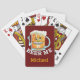 A grinning, cartoon beer with the words "Beer Me." A funny design for any beer lover. On these playing cards, add a name or other text to the template to personalise. You can also customise the dark-red background colour.