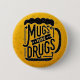 Choose beer, not drugs. The humourous typography design on this button shows the outline of a beer mug in black with the words, "Mugs Not Drugs." The background has a light bubble effect.
