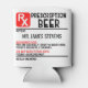 Funny Beer Prescription Personalised Name Can Cooler features a fun modern design featuring a personalised prescription for beer. Personalise by editing the text in the text box provided.