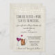 Come for the beer and wine. Stay for the wedding. Funny invitation wording for a fun wedding. The beer and wine toast artwork is hand-drawn on a wonderfully rustic wood background.