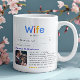 Funny mug for your wife with a 'Wife search' logo and a single search result for "Best wife ever', featuring your wife's name, a photo, your personal message and a 5-star rating. If you need any help customizing this, please message me using the button below and I'll be happy to help.