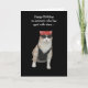 A big 13 lb. mostly scottish fold cat really wearing a black leather vest, red bandanna and sunglasses. You can change the background colour and customise text front and inside.