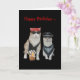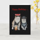 Funny cats biker couple. Bubba, a big, stocky cat in a red bandanna, black leather vest, and sunglasses. And Missy in a leather hat and black and silver bandanna. You can customise all of the text. You could customise it for the female, by moving the birthday cupcake and changing the text inside. You can change the background colour, fonts, font sizes and colours.