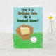 Give your favourite baseball player or fan a chuckle with this funny birthday card. It features a painted illustration of a baseball glove with a slice of birthday cake in it alongside a baseball. The message on the front reads: How is a Birthday Cake like a Baseball Game? The message on the inside reads: You can't have either without a Batter! HAPPY BIRTHDAY!