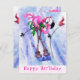 Funny Birthday Card Pink Flamingo Skier - Cartoon