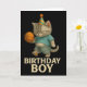 Funny Birthday Cat Playing Sketll – Slam Dunk Kity Card