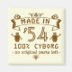 This funny birthday novelty gag gift square magnet says, "Made in ___ / 100% Cyborg / no original parts left." The unique over-the-hill design is done in all brown with a combination of retro / vintage flourishes, a banner and two little robots. Easily change the year to the year the recipient was born. This is the perfect humourous birthday gift for a geek or nerd who likes robots.