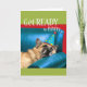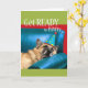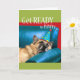 Funny Birthday, Dog Asleep on Couch with Party Hat, paper greeting card. Cover features a photograph/digital art image of a German Shepherd mix asleep on a blue couch and wearing a birthday party hat. Get Ready to PAWty text on the cover. Personalise the inside message as desired. Photograph courtesy KBaker. Design and verse copyright © Shoaff Ballanger Studios.