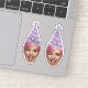 Celebrate any birthday with laughs! This hilarious custom sticker features a face photo wearing a fun yellow party hat with the age on it. Easily personalise it with your picture and number — perfect for milestone birthdays like 15, 55, 12, and more! Great for party favours, decorations, or gifts. Edit using the design tool to upload a clear face and change the age. Make any celebration unforgettable!